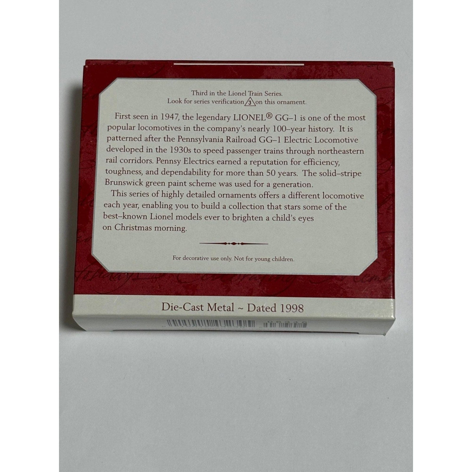 1998 Hallmark Keepsake Christmas Ornament Lionel Pennsylvania GG-1 Locomotie