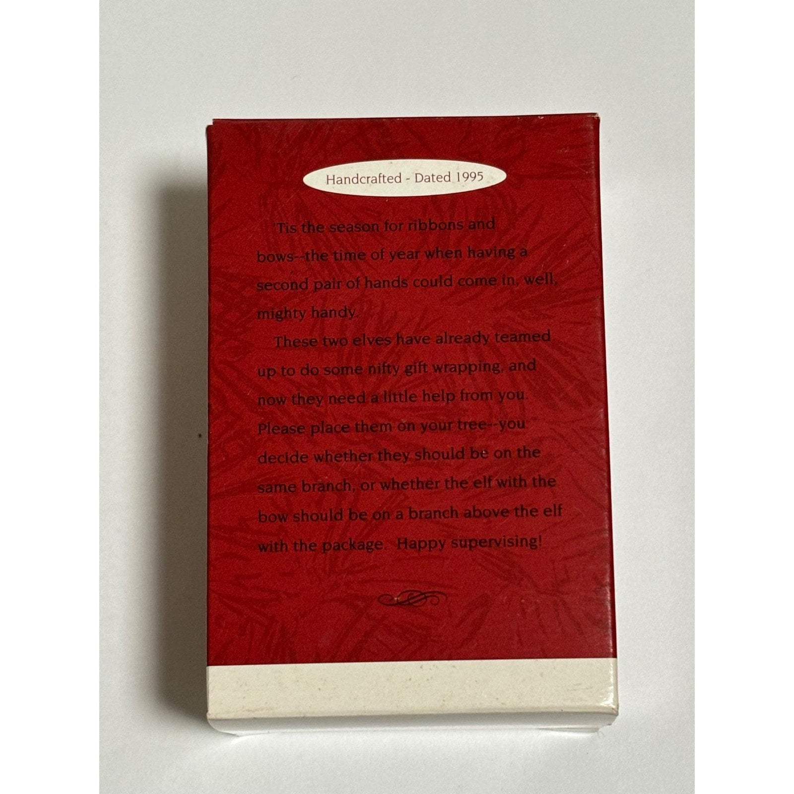 Hallmark Keepsake Happy Wrappers Elves Wrapping Gifts Christmas Ornament 1995