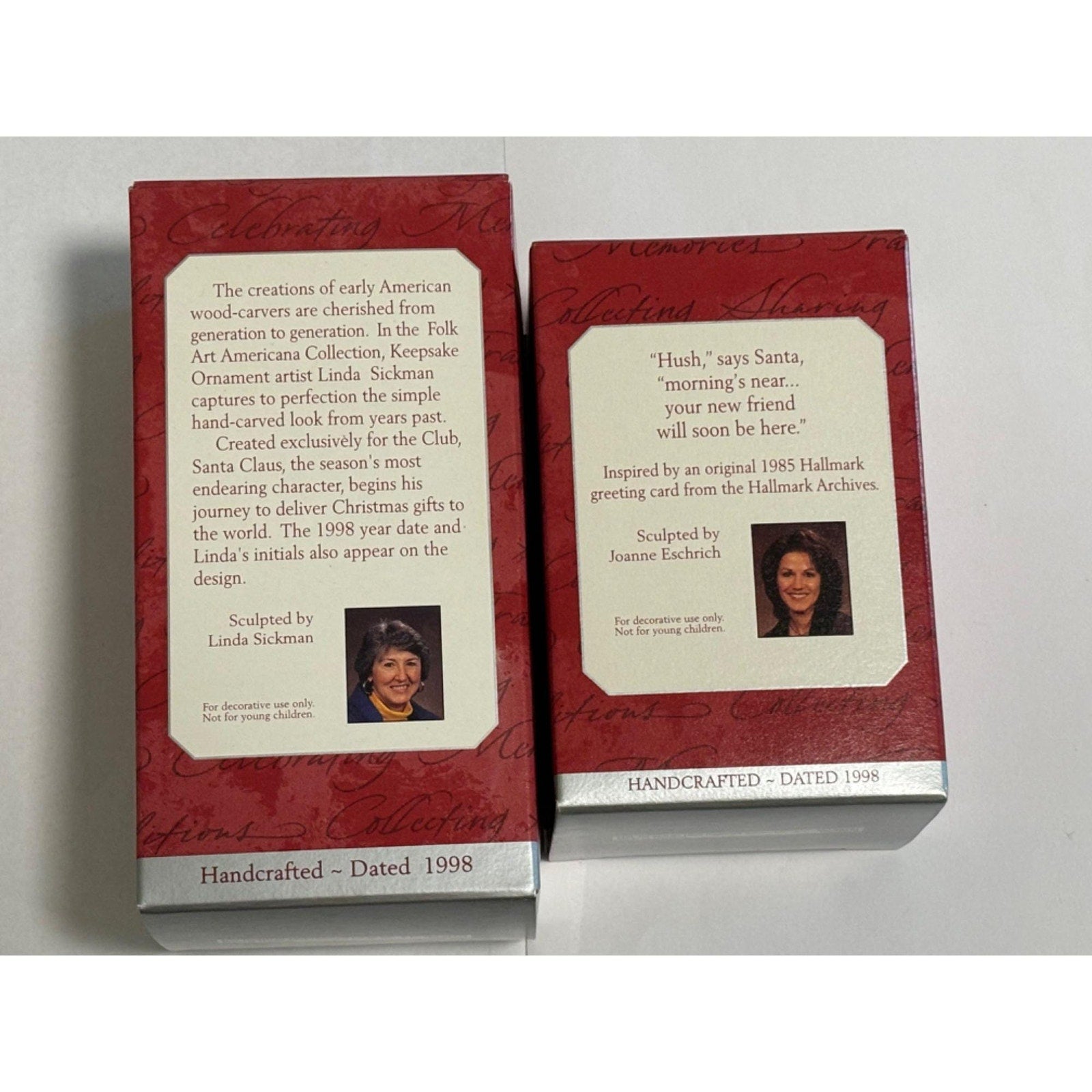 Lot of 2 1998 Hallmark Membership Ornaments Santa Making His way New Christmas Friend
