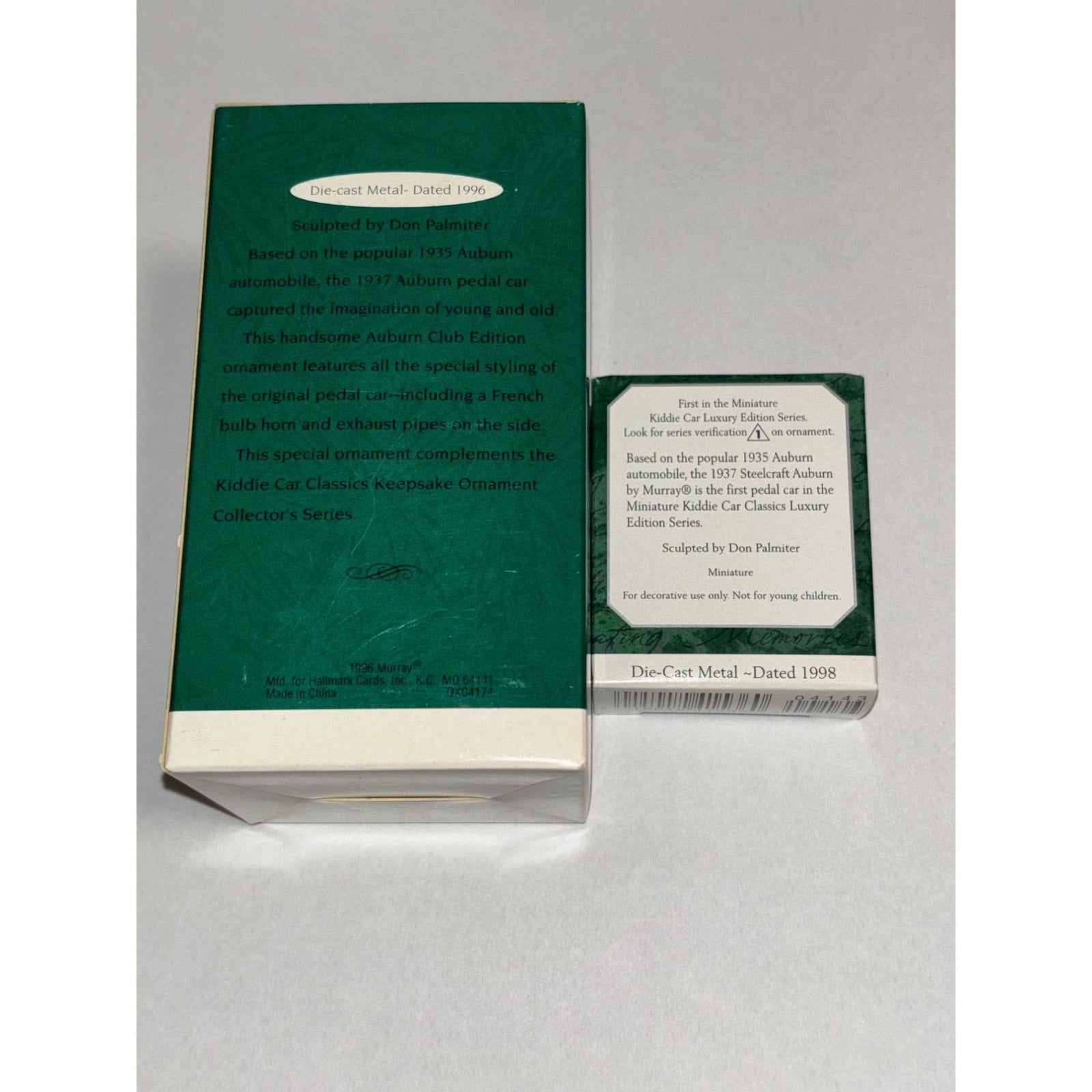 Lot of 2 Hallmark Keepsake Ornament 1937 Steelcraft Auburn 1996 normal 1998 mini