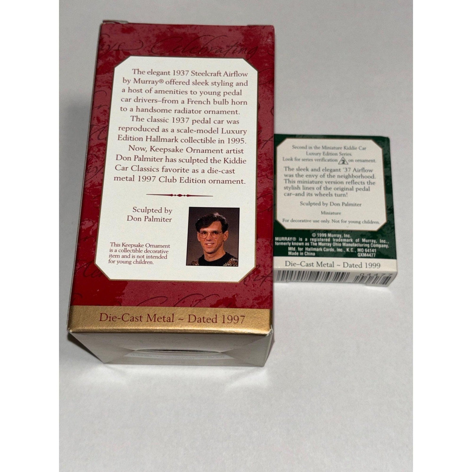 Lot of 2 Hallmark Keepsake Ornaments 1937 Steelcraft Airflow miniature 1999 and normal 1997