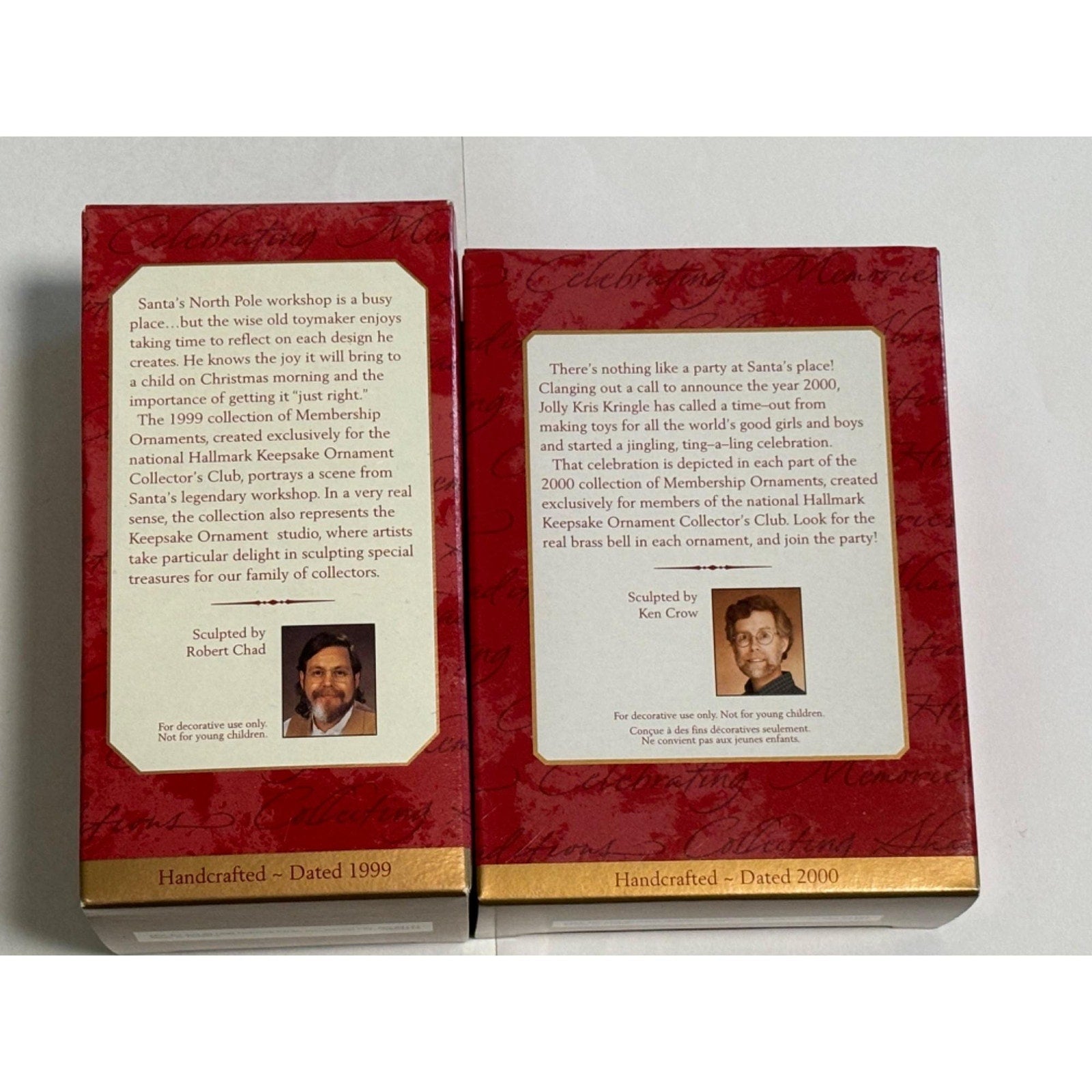 Lot of 2 Hallmark Ornaments Santa Gold Membership Ornaments 1999 and 2000