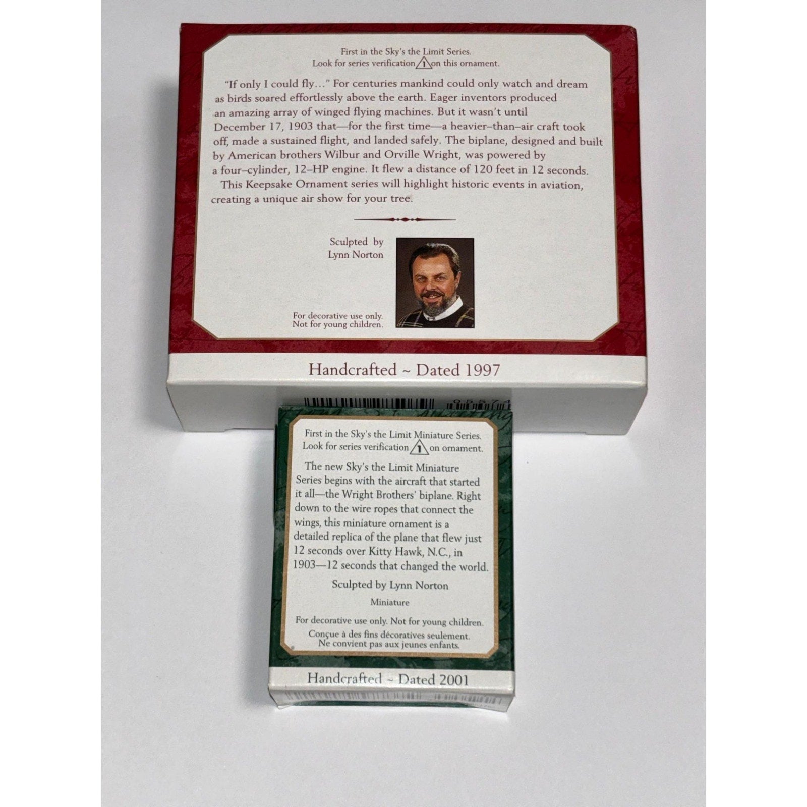 Lot of 2 The Flight at Kitty Hawk Hallmark 1997 2001 Sky's Limit Ornament Wright Bro Plane
