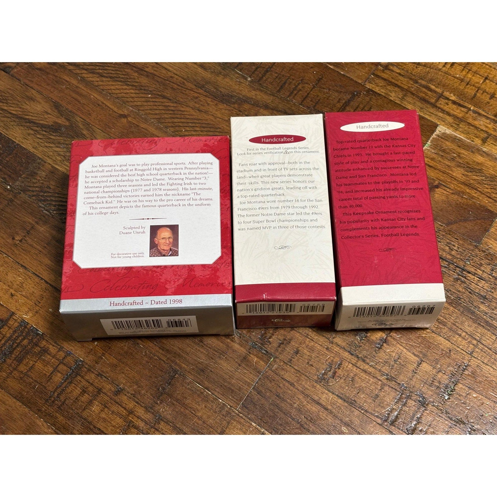 Lot of 3 Hallmark Ornamets NFL Joe Montana 1995 49ers and Chiefs 1998 Notre Dame