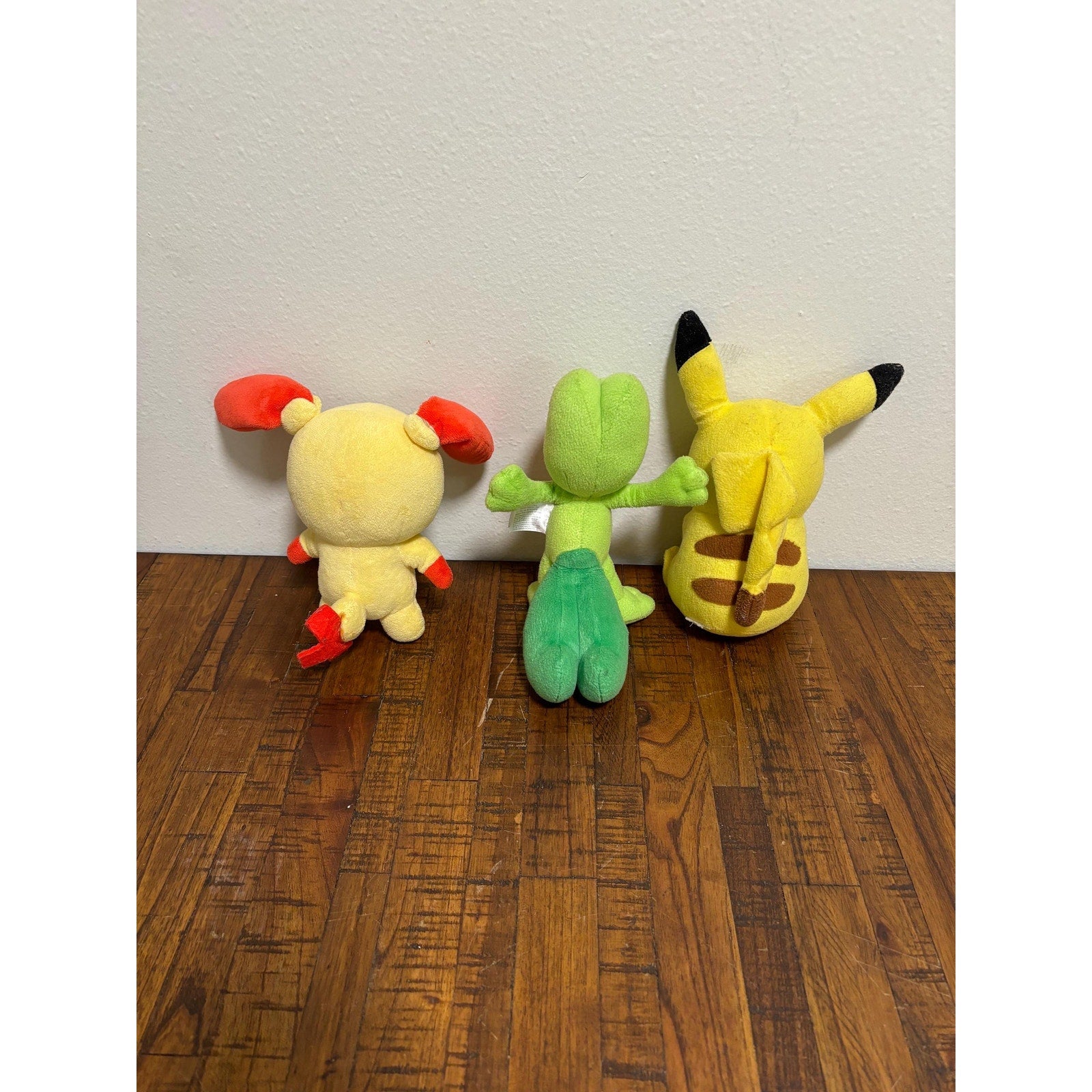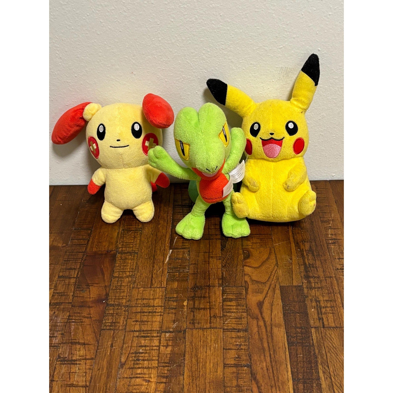 Lot of 3 Tony Pokémon Plushes Stuffed Animals Pikachu 9” Red Ears 10” Treecko 8”